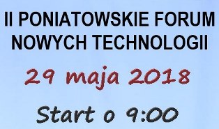 29 maja 2018 w Zespole Szkół w Poniatowej odbędzie się „II Poniatowskie Forum Nowych Technologii”. Konferencja skierowana jest ona do uczniów szkół gimnazjalnych i średnich z naszego regionu. Przewidujemy udział około 100-150 osób. Zapraszamy z każdej szkoły w regionie do 10 uczniów interesujących się informatyką, nowymi technologiami itp. wraz z opiekunem.